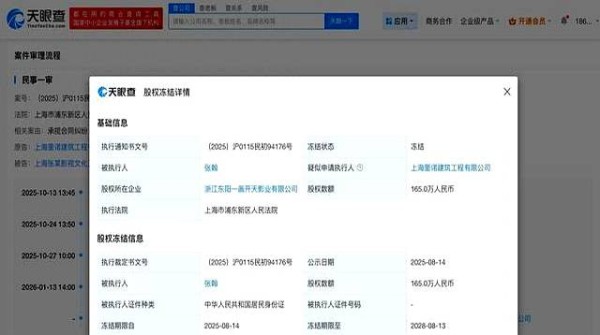 近日,张翰因与上海里诺建筑工程有限公司的合同纠纷,其名下165万股权被法院冻结。