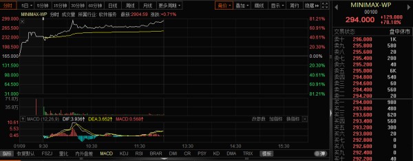 开盘后其股价迅速拉升,截至午间收盘涨78.18%,报294港元,总市值飙升至909.2亿港元。早一天上市的智谱(02513.HK)涨14.9%,报151.1港元/股,总市值665.2亿港元。