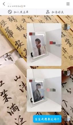 进入群聊后,王贝贝发现群主迅速将其他群成员禁言,只留下管理员在群内发布消息。管理员首先发布了几张明星陈某某的签名照片,声称有需要的粉丝可以私信免费获取。而王贝贝看到签名照后心动不已,立即添加了群管理员为好友,私信申请领取。