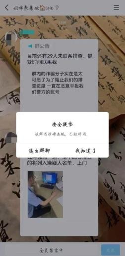 就在王贝贝添加管理员后,群内情况突变,两名自称是“警察”的人加入群聊,并发布了一张“工作照”以证明身份。他们声称该QQ群涉嫌“诈骗粉丝”以及泄露“明星隐私”,要求群内成员联系他提供相关证据。而此时,该群也突然被举报停用。