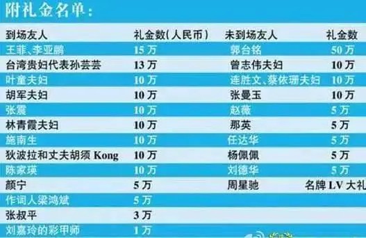 明星结婚份子钱都给多少?看完才明白,最可怜的就是胡歌了