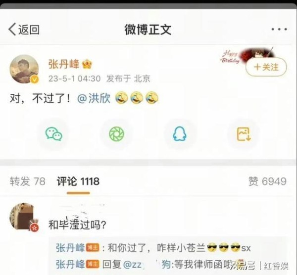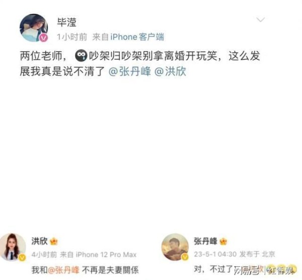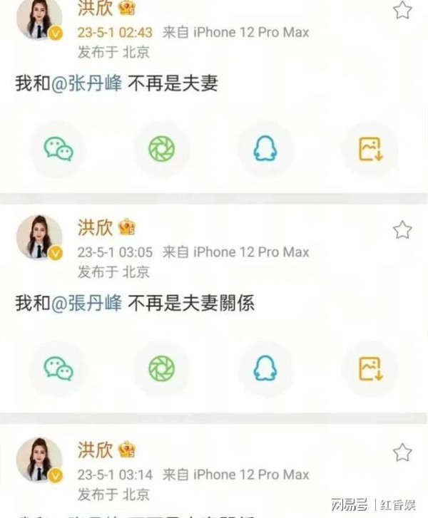 如果说出轨是张丹峰人设崩塌的开始,那么去年的"假离婚"闹剧则是对公众智商的又一次挑战。去年五一期间,洪欣突然在凌晨连发三条"已离婚"的动态,张丹峰紧随其后回应"不过了",还配上了笑哭表情包。当时全网欢腾,都在为洪欣终于摆脱渣男而庆祝。