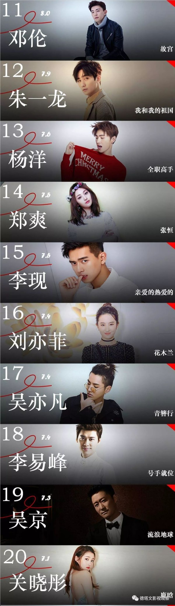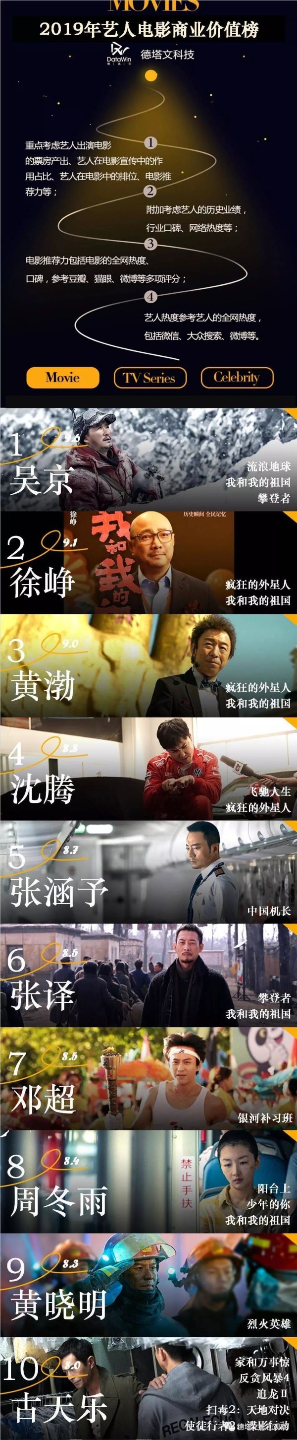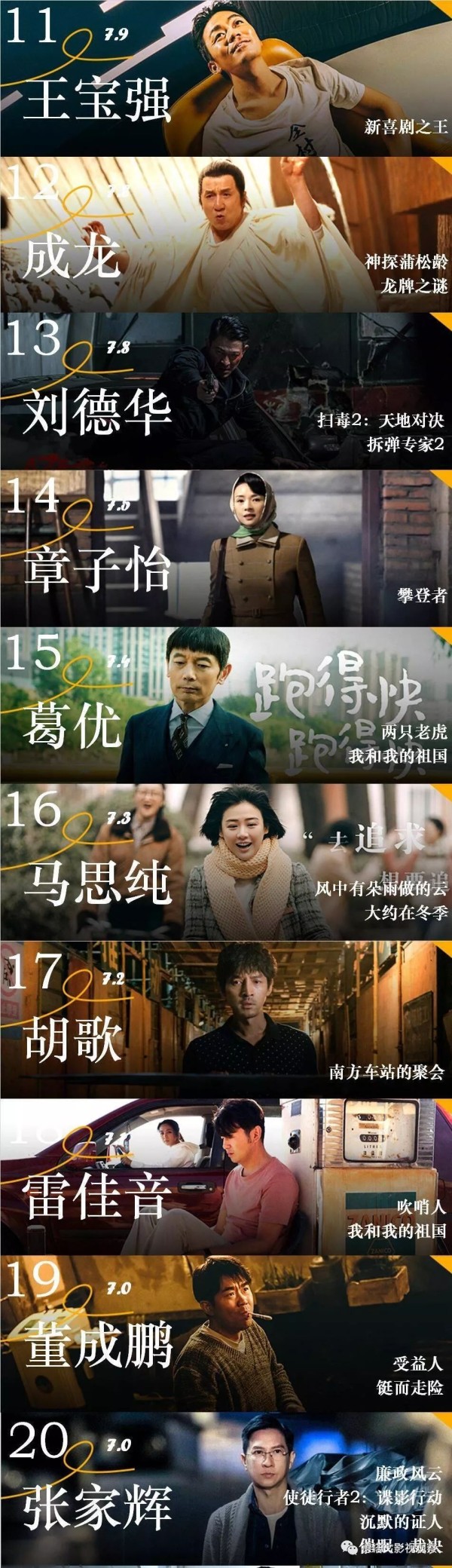 1-10 吴京 徐峥 黄渤 沈腾 张涵予 张译 邓超 周冬雨 黄晓明 古天乐