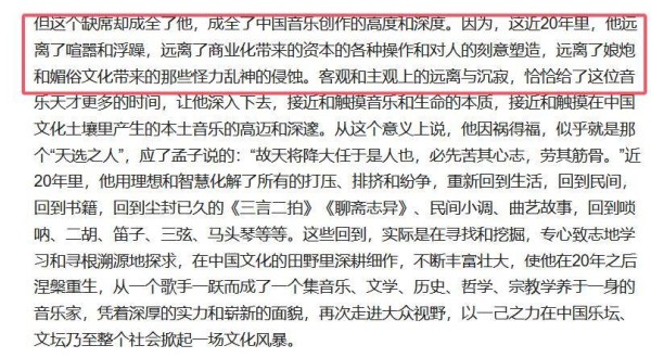 从这样的评价可以看出,吴国平显然对刀郎过往20多年的经历做了深入了解,包括他的音乐、生活经历、明星恩怨等,也只有做到这样,才能客观评价对方。