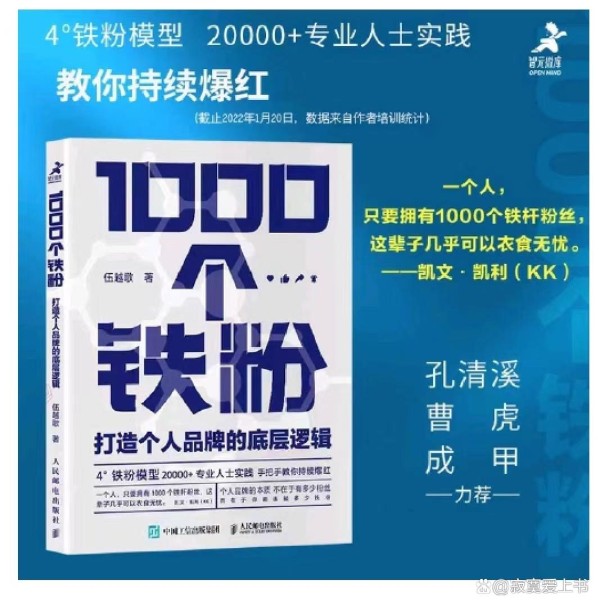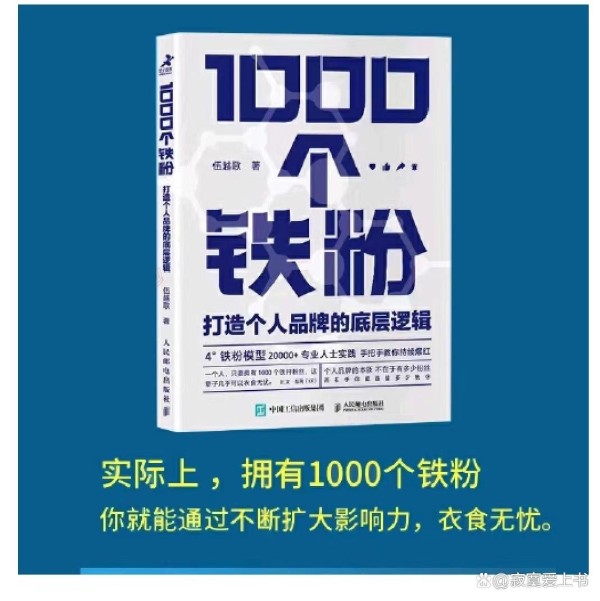 现在,伍越歌老师的《1000个铁粉:打造个人品牌的底层逻辑》这本书,将会手把手地教给你拥有铁粉,持续爆红,打造出过硬的个人品牌。