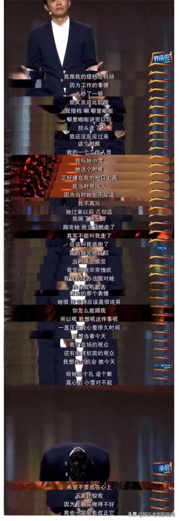 正当大家讨论手表争议时,曾毅曾经在央视节目《开讲啦》里的一段话被翻了出来。曾毅亲自回忆,在一次机场事件中,他与搭档玲花争执得非常激烈,情绪失控,恰巧有一位女性工作人员小雪过来沟通工作,他居然一脚踹了小雪,之后就跑了。虽然他在节目里表示了愧疚,并向小雪道歉,但如今手表事件发酵,旧事被重新翻出,部分网友开始将两者联系起来,质疑他的个人品德。