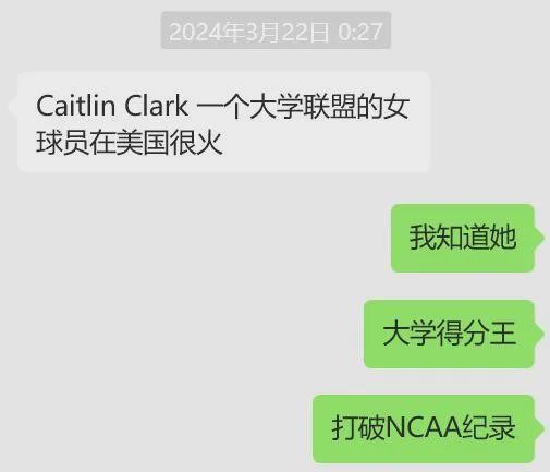 今年3月份,有个在美国的同学突然给我发消息说:Caitlin Clark(凯特琳-克拉克)在美国很火。其实他平时不关注篮球,虽然离勇士主场大通中心很近,但我这同学也从来没去看过NBA的比赛,由此能发现克拉克的影响力有多大。