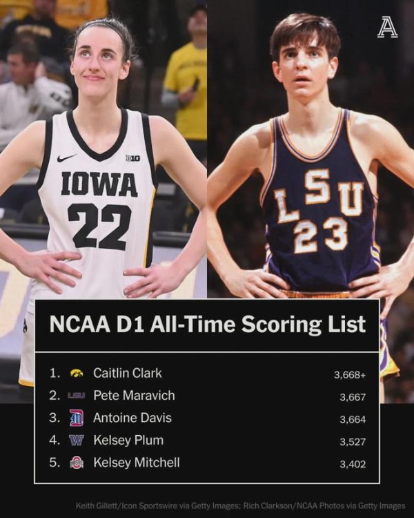 去年咱们发过克拉克的比赛集锦,我对这个姑娘印象深刻。克拉克单赛季命中200+三分,超越库里(162记),成为NCAA历史三分王。她还超越了皮特-马拉维奇(3667分),成为NCAA历史得分王,这两项纪录都包含女子和男子。