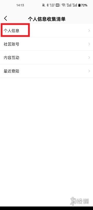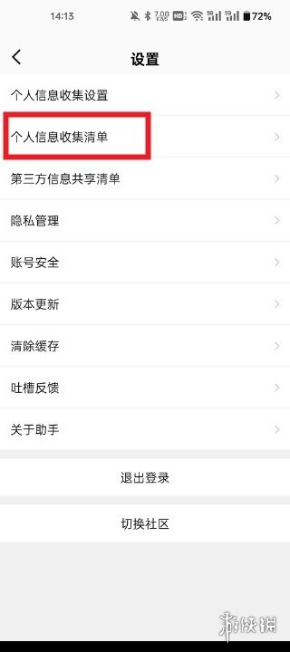 2、进入设置菜单后,下拉页面定位至【个人信息收集清单】功能入口。
