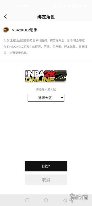 2、接着,进入相关页面绑定自己的游戏角色和大区。