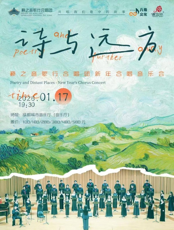 1月17日晚,知名作曲家吴颂今将携手籁之音歌行合唱团,以及洋溢着童真活力的成都城市音乐厅青少年合唱团,在成都城市音乐厅举行“诗与远方——2026成都新年合唱音乐会”。