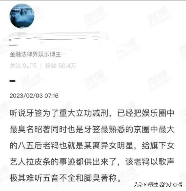 爆出这条大瓜的是个拥有五十多万粉丝的金融法律界娱乐博主,而转发这条信息的更是拥有一千多万粉丝的综艺博主,都是有点实力主。