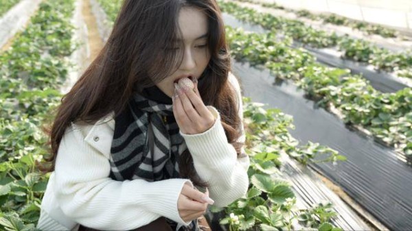 “汁水丰富,好香甜啊!”记者随手摘下一颗“越雪妃”品尝,浓郁的草莓香气伴随着清甜的汁水在口中化开。据了解,“越雪妃”粉白交融,凭借其高甜度、软糯口感脱颖而出,糖度最高可达19;“粉玉”不仅颜值高,白中透粉,口感细腻,还带有独特的奶香气;“红颜”则色泽深红亮泽,酸甜比例恰到好处,隐约透着樱桃香韵;而喜欢脆爽口感的则可以选择“隋珠”,它汁水丰沛,回味有淡淡蜜香;经典品种“章姬”则以糖酸均衡、清香雅致著称。