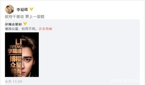 就在近日博众星和的官方微博发布了这样一条动态,博览众星,和而不同。紧接着李易峰就转发了这条微博,并且配文:“欲穷千里目,更上一层楼”,正式宣布了自己签约了新公司,随后李易峰工作室官方微博也转发了这条微博,并且配文表示未来一起继续放肆生长。