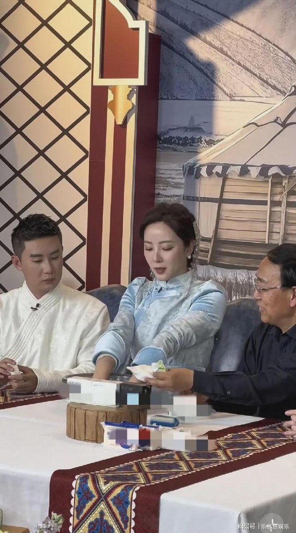 吃完饭以后马不停蹄,李思思又接着工作了,全程都是穿着蒙古族的衣服,本来很疲惫,也得强打起精神唱歌跳舞,为了带货赚生活费,她好拼。