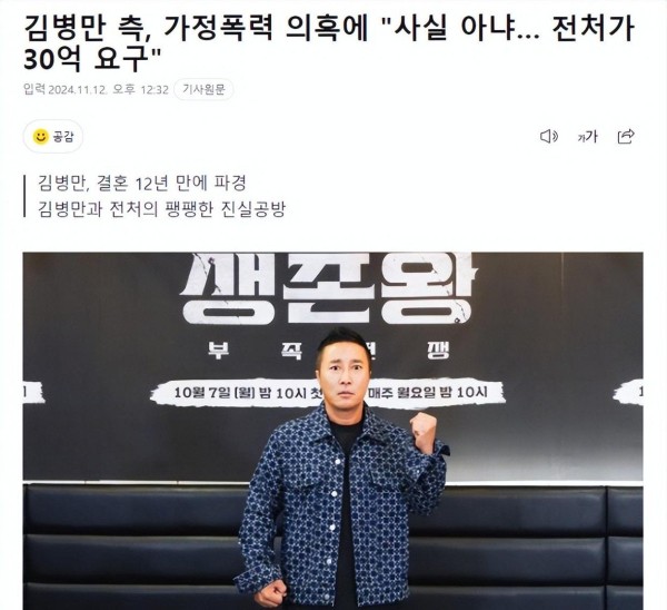 前妻A某的爆料,也让局势更扑朔迷离。她说自己这么多年一直受家庭暴力折磨,还被她移交给检察官,什么我经常挨打,她说我太啰嗦,害得我心惊胆战。倒是一副凄惨的模样,但更令人震惊的是,她竟然还控告金炳万要付出30亿韩元的抚养费。这金额大得令人咋舌,像是铺天盖地的阴影裹挟而来。
