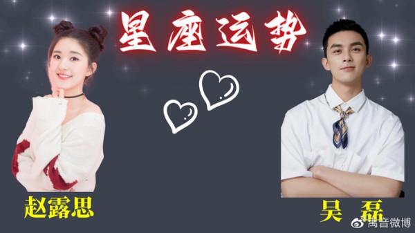 大家为这个CP团体取了个很好的名字。 吴露可逃。今天赵露思又双双登上热门,这样小伙伴对于两人的兴趣空前的高涨,发信息让我帮忙看一下他们是否可以成为情侣,我就通过星座的角度解析一下吧!