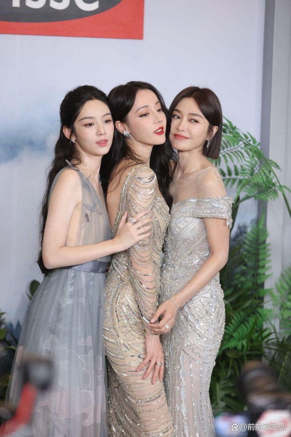 秦岚、迪丽热巴、周也三位美女明星同框合影,真是养眼又让人心动