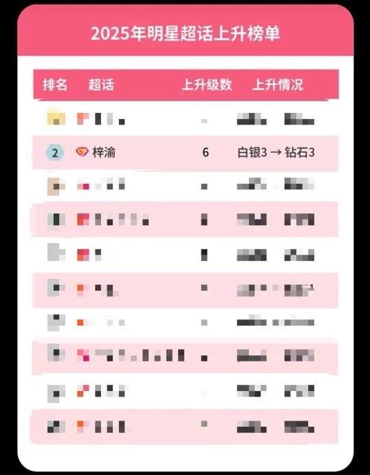 2025年上升过钻三超话 梓渝超话位于Top4