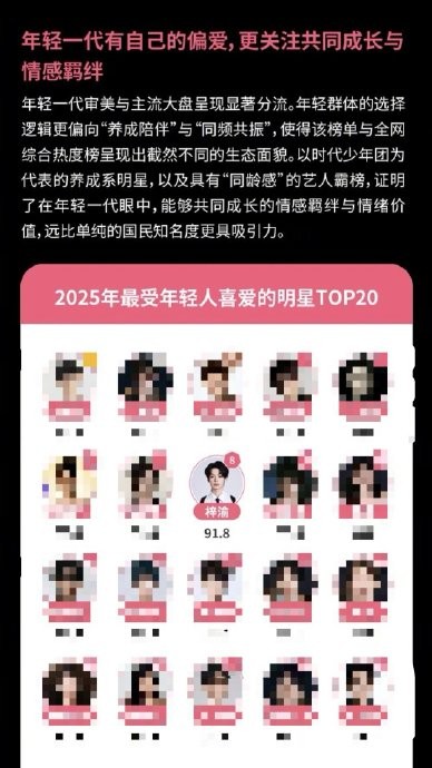 2025年最受年轻人喜爱明星 Top8
