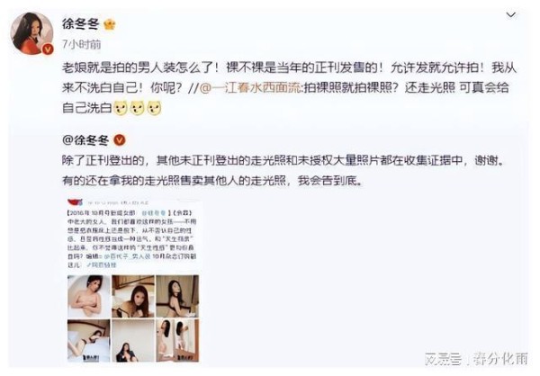 徐冬冬早期走光照遭贩卖!评论区乌烟瘴气,本人回应:我会告到底