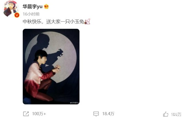 顶流的中秋数据:华晨宇的微博转发量破百万,杨紫的互动数据最差