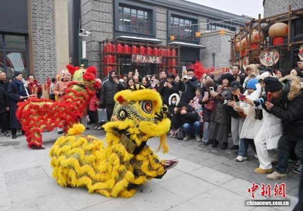 图为民众在看舞狮表演。中新社记者 张瑶 摄
