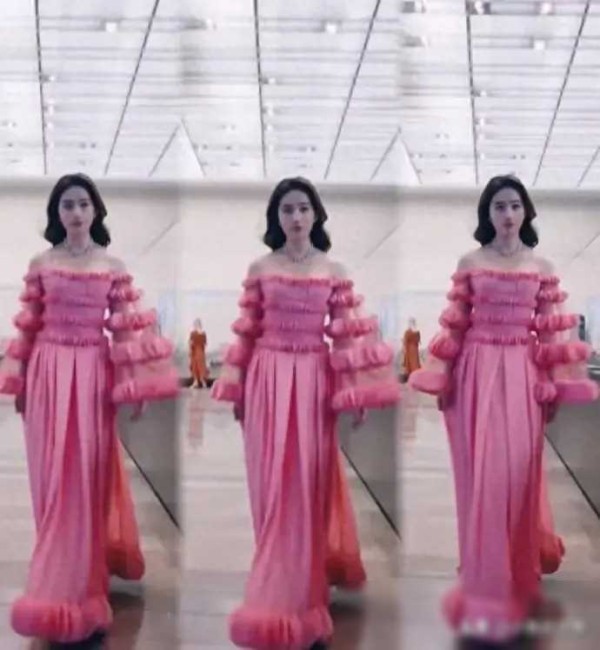 刘亦菲又挑战难度高的衣服,土紫色花朵裙像一坨卷纸,不俗很时髦