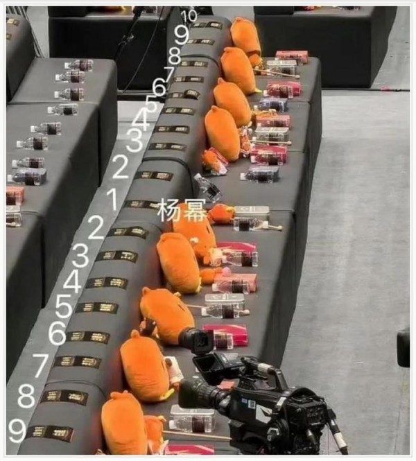 原计划第二排三人沙发:辛芷蕾稳居正C位(1号) 杨幂(2号)右边 肖战(3号)左边,三人并排毫无争议。