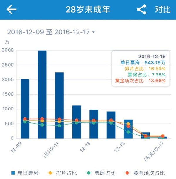 《28岁未成年》豆瓣评分6.1,12月9日上映至今累计票房1.14亿元。上映9天,该片票房、排片都已见底,未来票房增长非常有限。