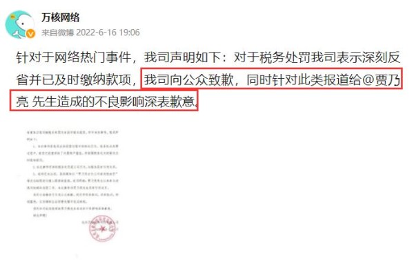 热搜第一!贾乃亮参股公司逃税被罚 公司紧急回应