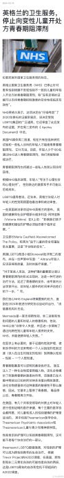 换句话说,近几年因为名人、媒体的支持,很多青少年儿童使用激素和药物治疗,去做跨性别者,现在官方判定这些治疗都是不安全的。