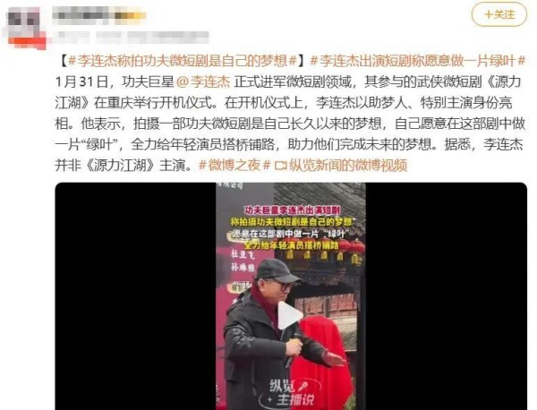 据公开报道,李连杰参与了吴京正在筹备的新片创作,不过不再担纲绝对主角,而是以配角或特别出演的方式出现。