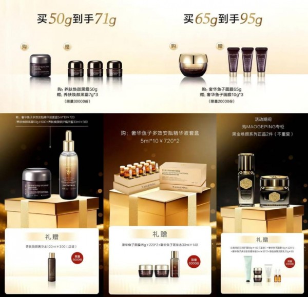 奢宠护肤,恒久滋养:购买毛戈平养肤焕颜黑霜50g正装,即获赠同款面霜3件(7g装);购买毛戈平奢华鱼子面膜65g正装,则赠送同款面膜3件(10g装),助力开启修护之旅。