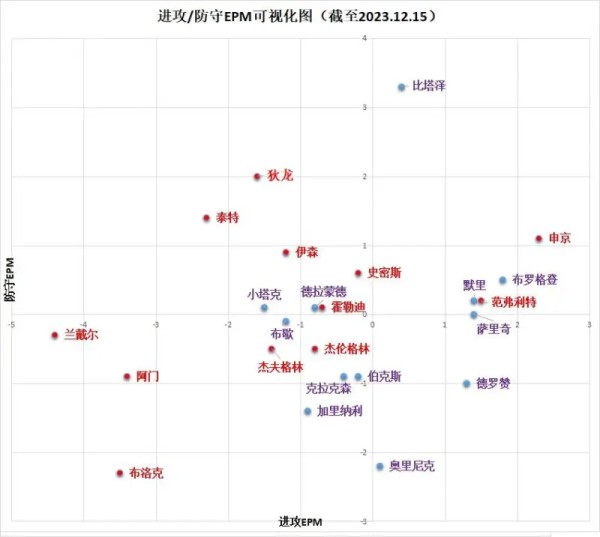 以上数据来自https://dunksandthrees.com/epm。数据更新到2023年12月15日,以本赛季为准,有一定局限性,仅供参考,等到转会截止日前再更新会更有说服力。