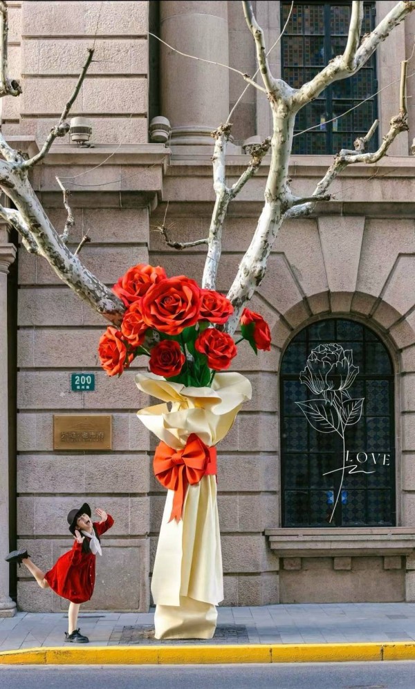 有了想法之后,徐琰便联系了老市府大楼项目方上海外滩投资开发(集团)有限公司(以下简称外滩投资集团),商量能否落实。彼时,老市府大楼正在做新年灯景布置。徐琰的创意与老市府大楼的灯景装扮、以及黄浦区打造海派年味体验地的追求不谋而合,也得到了相关部门的支持。外滩投资集团认为,有了“玫瑰花树”的加持,外滩第二立面的街景会更加美丽、吸引更多市民游客驻足。