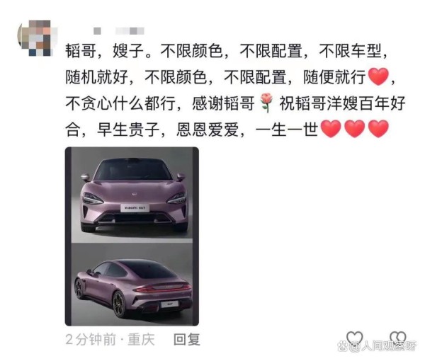 网友直接选好了小米SU7的颜色发在评论区,并写上了各种恭维黄子韬和徐艺洋的文案