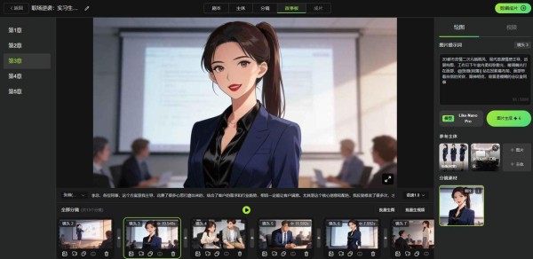 当把角色和场景都定好后,系统会自动把它切分成一个个具体的镜头。