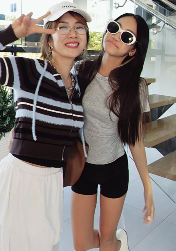 上个月刚过完14周岁生日的大女儿Jessica,当日身着灰色短袖T恤,搭配黑色紧身短裤,脚踩白色运动鞋,头戴白色圆框墨镜,简约运动风的穿搭满是青春活力。如今她的身高已追上妈妈,身形修长,腿部线条流畅,尽显少女的轻盈感。值得一提的是,此次李念大方让女儿露脸,Jessica一头长发随意披散在肩头,五官清秀,眉眼间更像爸爸,戴着墨镜的模样,甜美中带着几分酷感,与妈妈的风格形成巧妙呼应。