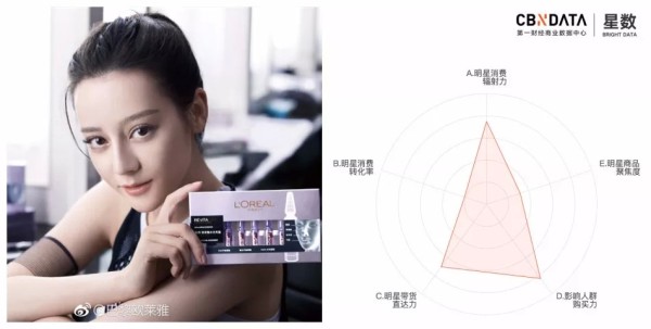 而关晓彤和奚梦瑶则是缘于她们在其他品牌美妆用品上的演绎更为打动消费者,而使得她们代言的巴黎欧莱雅产品被分散的注意力,从二人的CBNData星数罗盘来看,他们在明星商品聚焦度(指数E)上得分较低,可见她们代言的巴黎欧莱雅同款商品未能获得足够的消费者关注度。