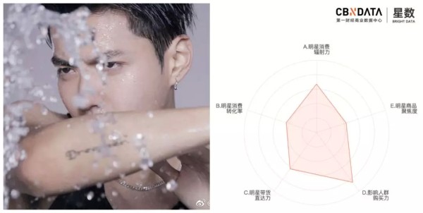 主要缘于巴黎欧莱雅男士系列产品线较女士美妆的产品线并没有那么丰富,以至于呈现了代言人养眼但产品丰富度上却不够让他们展现带货实力。分析二人的CBNData星数罗盘发现,吴亦凡和吴彦祖二人在明星消费转化率(指数B)上得分领先于其余7位明星,可见搜索二人同款的消费者买买买毫不犹豫,其中关注吴彦祖同款的消费者黏性(指数E)更属9位明星中最强的。可见,两位不缺粉丝,缺的是能带的产品哦。