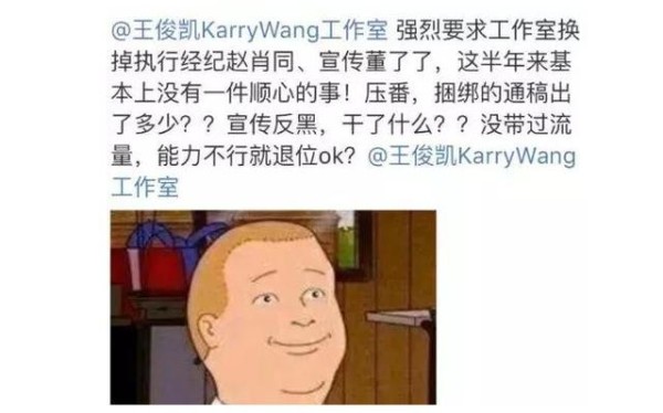 前一段时间,王俊凯的经纪公司李冰冰工作室的总负责人李雪,也在朋友圈中发了消息,表示王俊凯的宣传总负责人,已经担任了比较高的职务,但是在宣传的过程中却刻意抹黑王俊凯,却抬高其他的艺人。