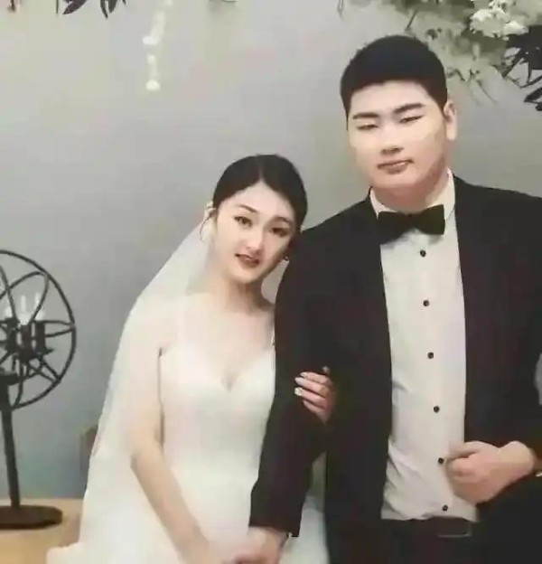 新郎官长相朴实,一看性格就很随和,他也挺福态的,身体略微显胖。