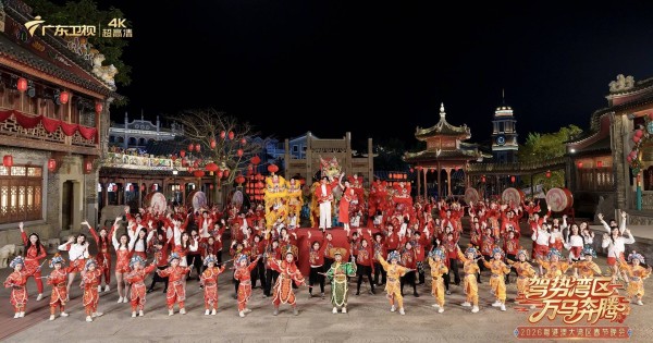 2月15日(年廿八)晚,《驾势湾区 万马奔腾——2026粤港澳大湾区春节晚会》在广东卫视及全网多平台同步播出。晚会以“驾势”(粤语意为“威风”“了不起”)为主线,汇聚多国演艺嘉宾,对大湾区精神内核进行精准解码,展现了湾区同心、逐梦前行的奔腾气象。晚会播出后热度飙升,全网传播量超40亿,《迎春花》《皆大欢喜》《嘉禾望岗》等多个节目及“大湾鸡”等文化ip引发热议。