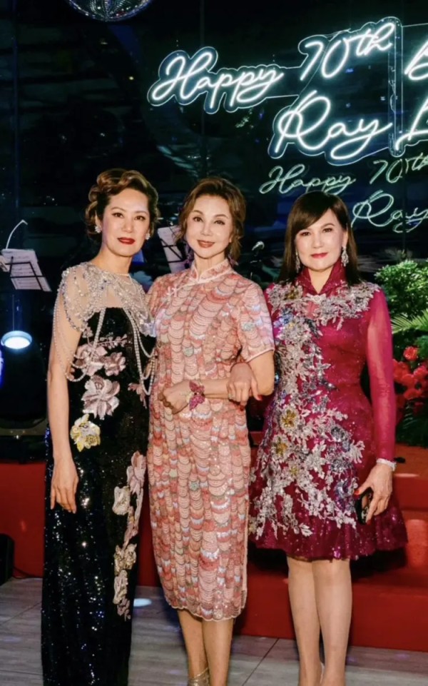 谢玲玲当天身穿中式旗袍现身,还拿了一个毛绒披肩,这一身绝对是量身打造的,仿若就是从那个年代走出来的阔太太,举止优雅、大方,谈吐也是如此。在场她除了与主人家各种合照,与姐妹、闺蜜留影外,谢玲玲还发挥了其长袖善舞的本色,与其他名人合照。被她打卡的名人就包括胡兵、章小蕙等,还别说这些都是当今香港社交场上的稀客,只能佩服谢玲玲的社交能力。