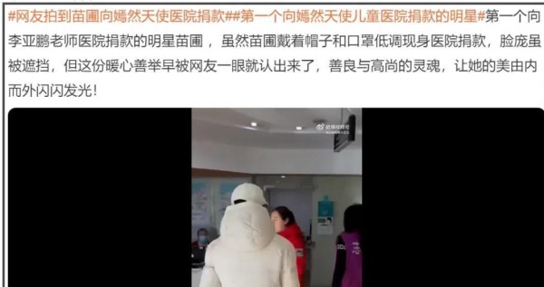 苗圃现身嫣然医院,首位娱乐圈,捐款明星出现了!