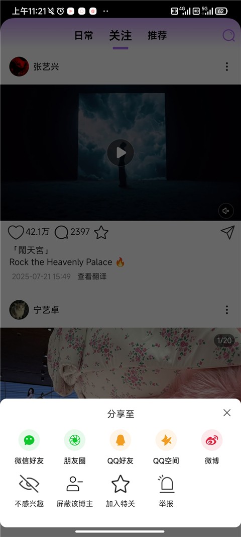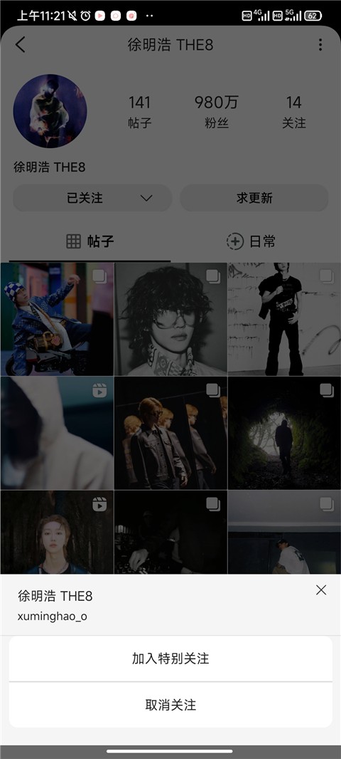 方法2:点击你想特别关注的博主头像,进入其个人主页,先点击关注按钮关注该博主,然后再次点击已关注按钮,之后会出现加入特别关注的选项,点击即可