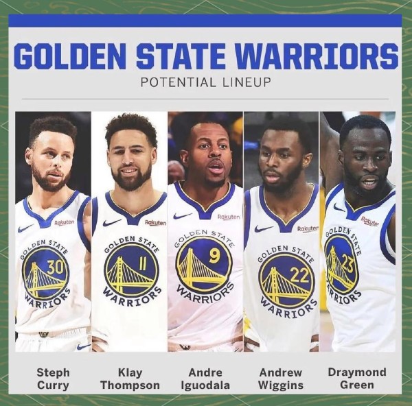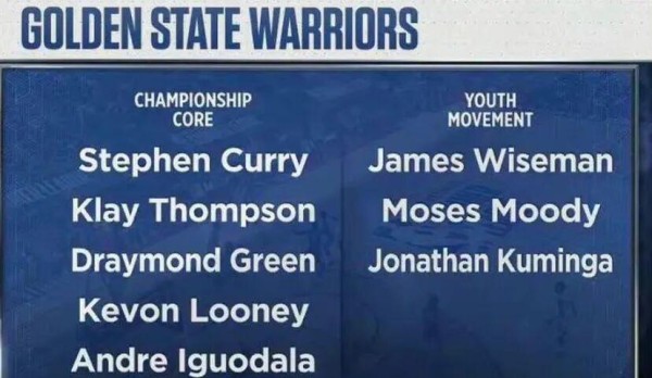 后卫线:库里、汤普森、普尔、穆尔德、穆迪、奇奥扎、佩顿二世