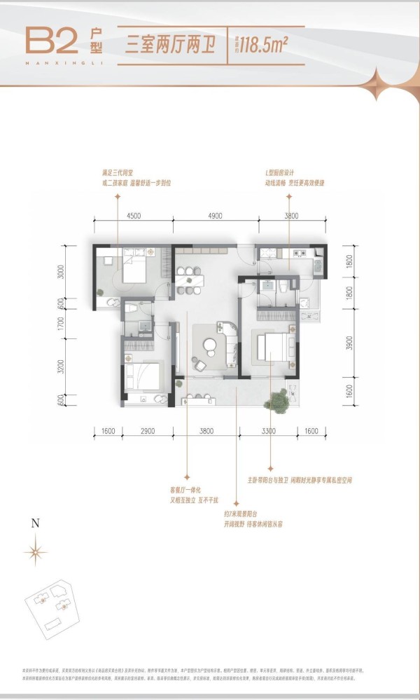 4. 项目主打118-160㎡改善型产品,户型设计充分考虑全龄段居住需求