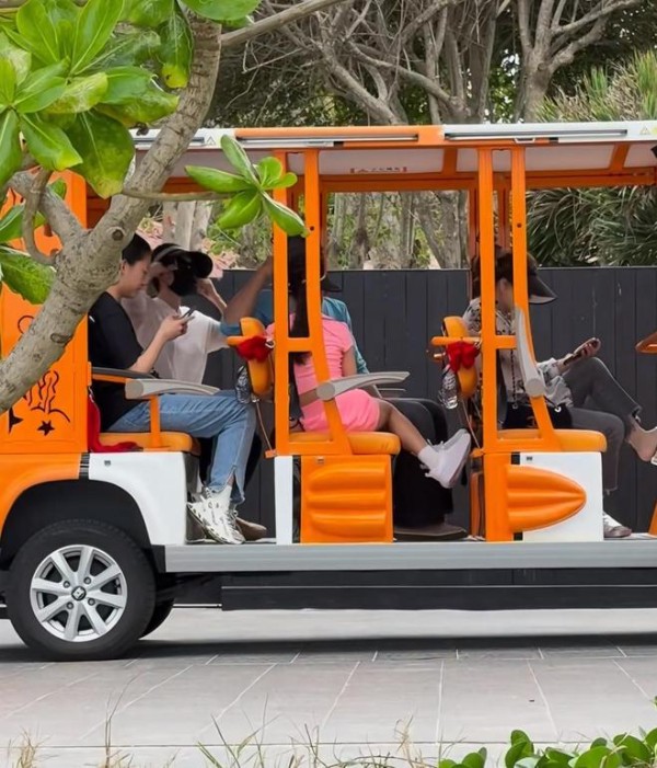 章子怡与女儿等人乘坐游览车前往景区,等待期间,章子怡还与其他人热情聊天,准备离开时,章子怡戴上口罩,头上戴着一顶遮阳帽,把自己包裹得严严实实。